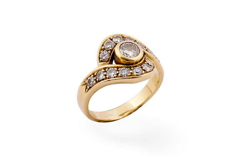 Lotto 97 | Anello con diamante centrale e brillantini. diamante cti. 0,25 diamanti...