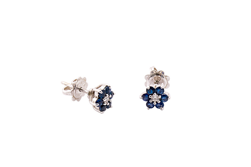 Orecchini con zaffiri e due brillanti.Oro 18 Kti Peso gr. 2,70
