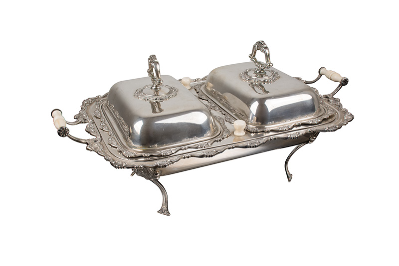 Scaldavivande con manici in avorio .Argento 800/°°° gr. 3,40