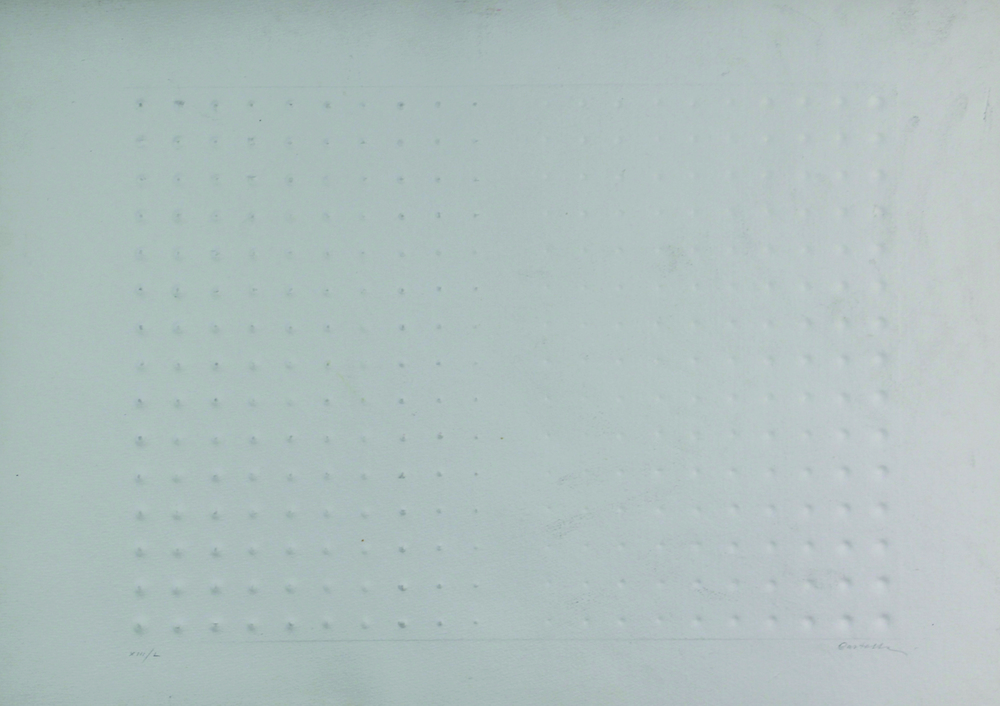 Enrico Castellani, Senza titolo, impressione a secco su carta, cm. 50x70, es....