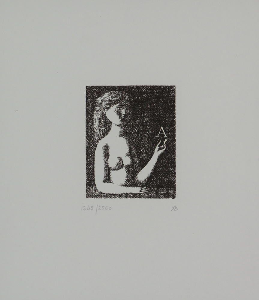 Antonio Bueno, Senza titolo, incisione su carta, cm. 26x22 (lastra cm. 9,5x8), es. 1242/2500, siglato in basso a destra