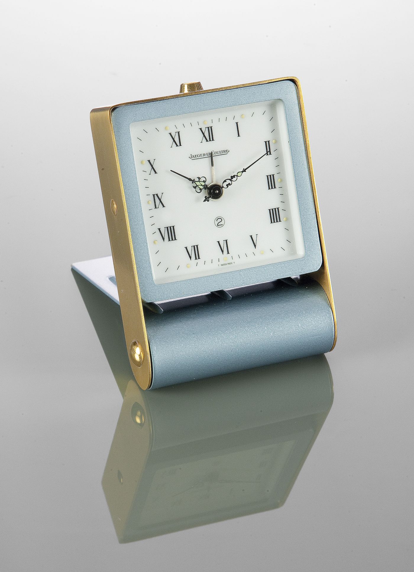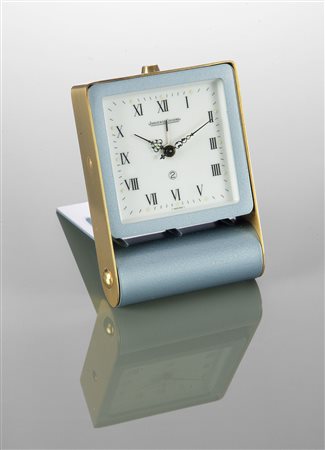 JAGER LE COULTRE Sveglietta da viaggio, anni '70 Cassa bicolore in due parti; quadrante smaltato con indici a numeri romani serigrafati Movimento due giorni di carica con funzione sveglia. Scatola e certificato
