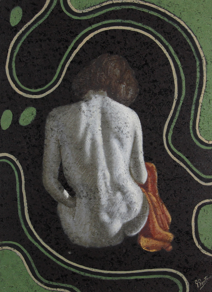 Gianfranco Rontani, Senza titolo, 1975, olio su tela, cm. 70x50, firmato in basso a destra, firmato e datato al retro