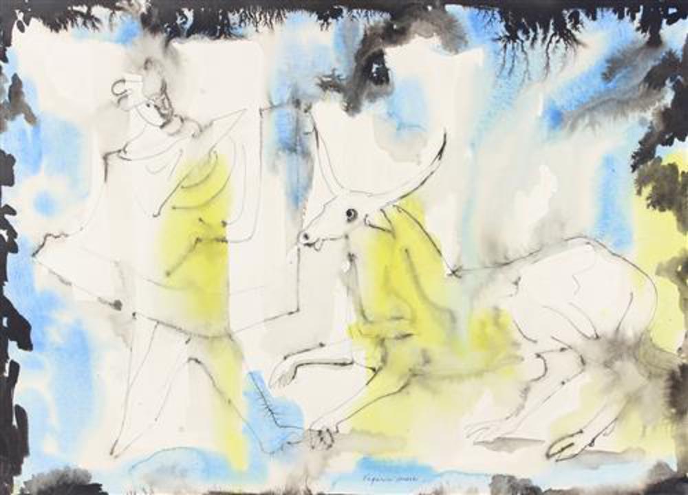 Cesare Vagarini, Senza titolo, china e inchiostri acquerellati su cartoncino, cm. 50x70, firmata in basso al centro, senza cornice