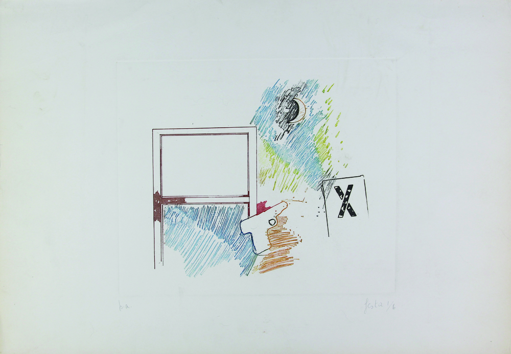 Tano Festa, Senza titolo, incisione su carta, cm. 50x70, es. prova d'autore,...