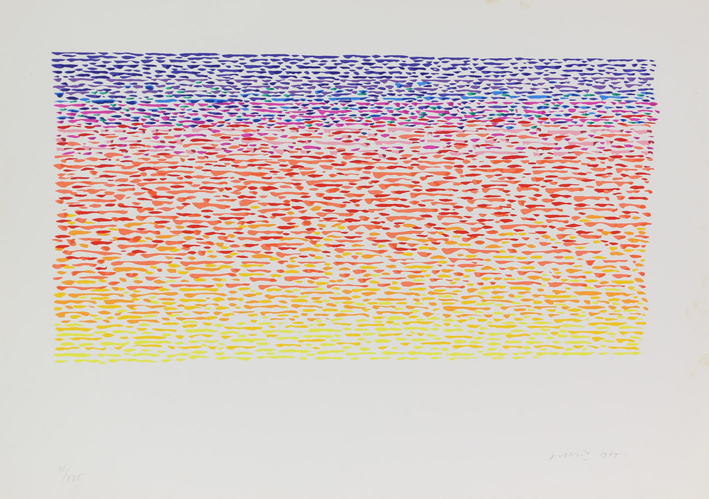 Piero Dorazio, Senza titolo, 1975, serigrafia su carta Fabriano, cm. 50x70, es. 111/125, firmata e datata in basso a destra, Edizioni Box 18 di Macerata, senza cornice