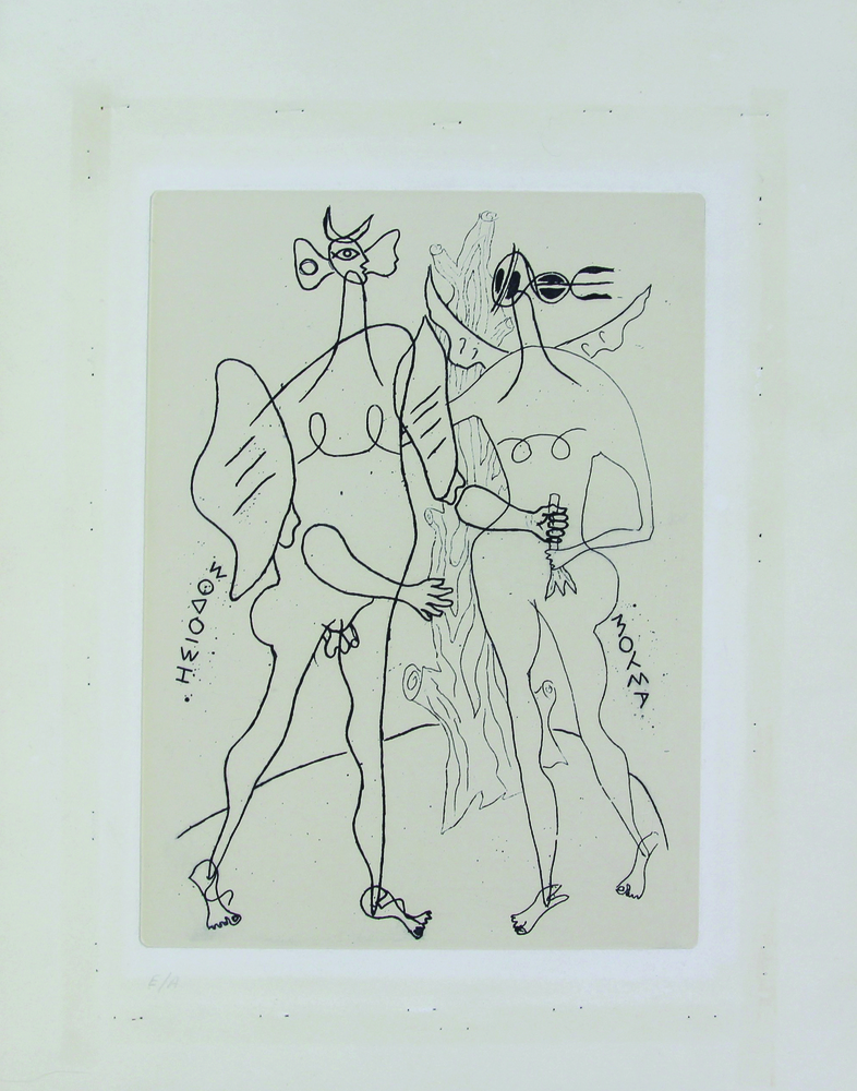 George Braque, Senza titolo, incisione su carta, cm. 50,5x35 (lastra cm. 29x21), es. E.A., bibliografia: D. Vallier - Braque L'Oeuvre Grae Catalogue Raisonne Flammarion, Parigi 1982, n. 23 pag. 56/62, sono presenti alcune macchie e segni di graffette metalliche al di fuori della parte incisa, senza cornice