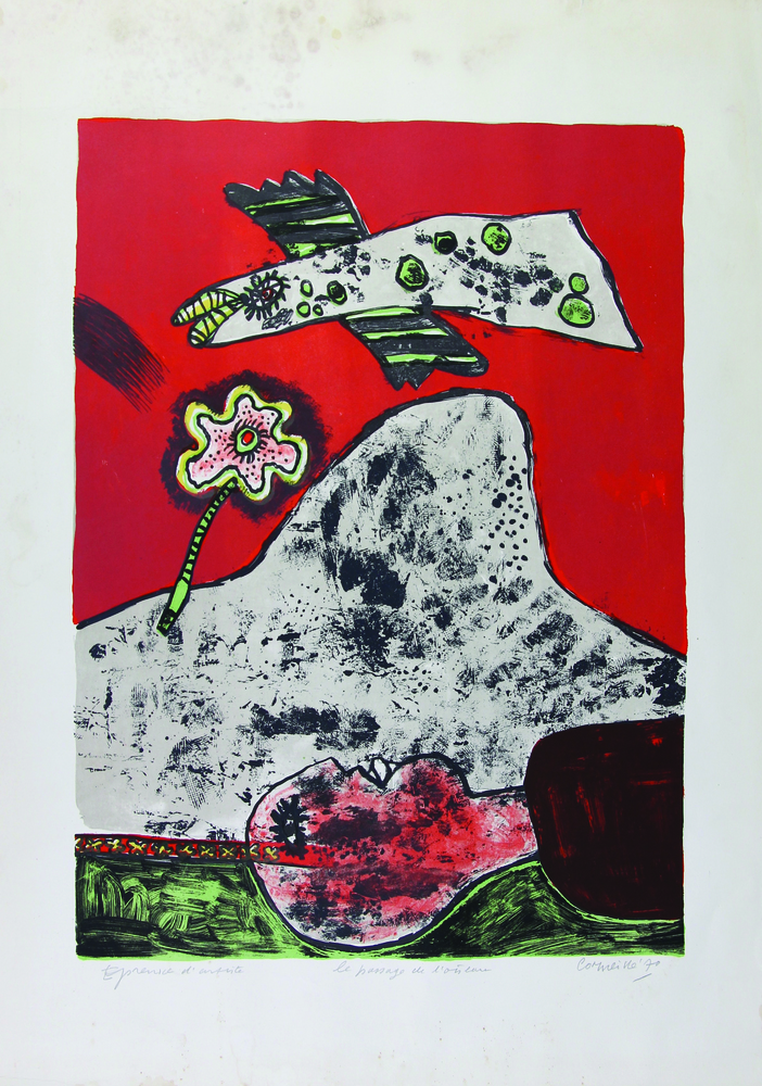 Corneille, Le Passage de l'Oiseau, 1970, litografia su carta, cm. 78x56, es....
