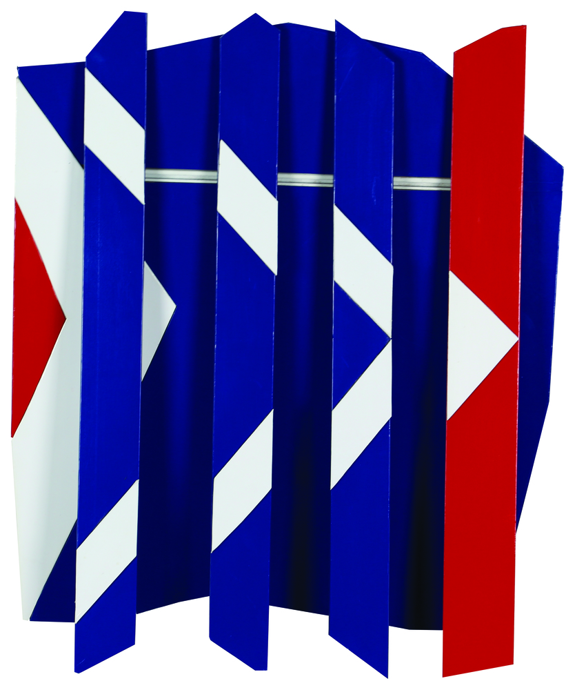 Gianfranco Nicolato, Blu O. V. Madì. Variante con movimento manuale, 2005, acrilico su legno, multistrato oracover, cm. 55x46x5, firmato, intitolato e datato al retro, pubblicato sul catalogo "Arte Madì Internazionale" pag. 70-71