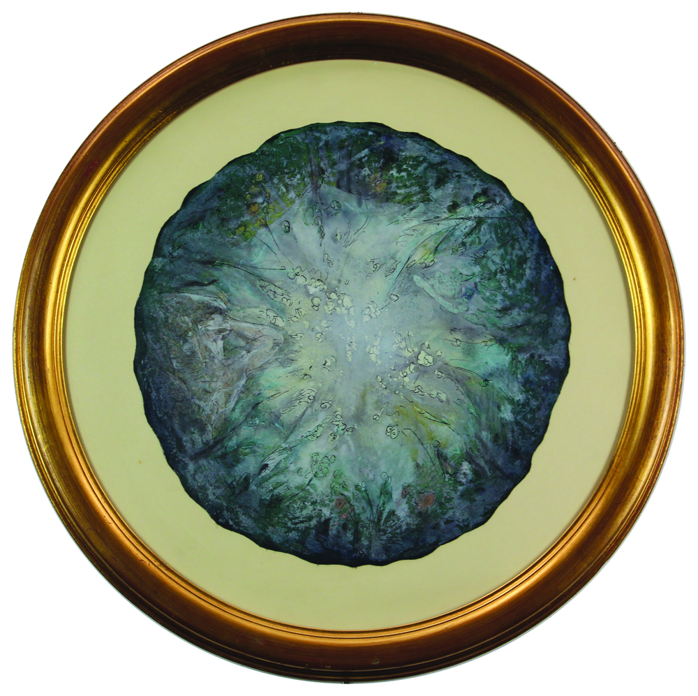 Domizio Mori, Cupole e Icone Profane, 1989, tecnica mista su cartoncino, diam. cm. 44, firmata in basso a destra, firmato e datato al retro