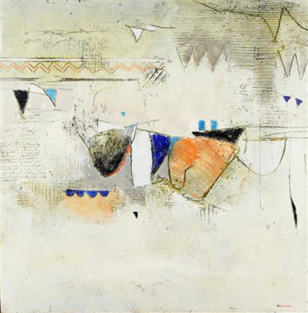 Diego Palasgo, Composizione sulla Facciata, tecnica mista su tavola, cm. 80x80, firmata in basso a destra, intitolata al retro, timbro FA al retro, certificato di autenticità della Galleria Ferrario di Trento datato 10/03/08