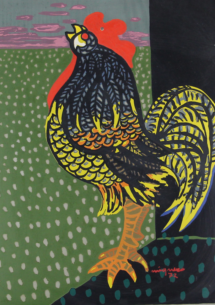 Giuseppe Migneco, Il Gallo, 1972, multiplo a pù colori su lastra, cm. 65x50,...