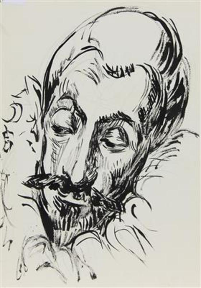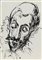 Cesare Vagarini, Studi Del Greco, pennarello su cartoncino, cm. 35x25, firmato e intitolato in basso a destra, l'opera consiste in due ritratti, uno sul fronte e l'altro sul retro, senza cornice