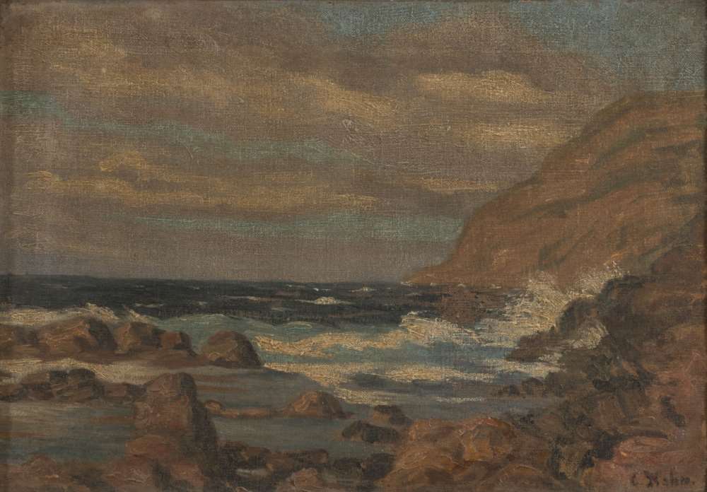 ARTISTA INGLESE DEL NOVECENTO Marina Olio su tela, cm. 42 x 60 Etichetta al retro