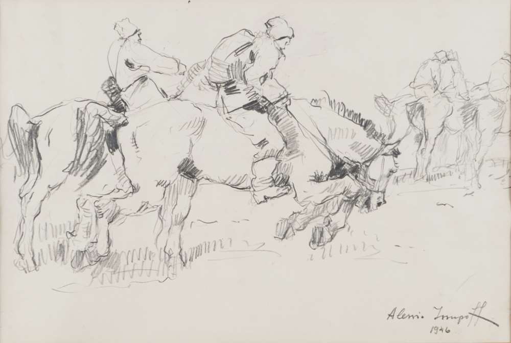 ALESSIO ISSUPOFF (Kirov 1889 - Roma 1957) Cavalli al galoppo, 1946 Matita su carta, cm. 33 x 49 Firma e data in basso a destra PROVENIENZA Collezione privata, Roma