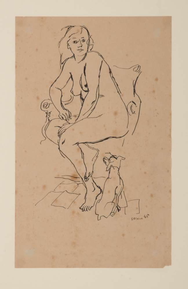 ANTONIO SCORDIA (Santa Fè 1918 - Roma 1989) Nudo seduto con cagnolino, 1945 China su carta, cm. 32,5 x 20 Firma e data in basso a destra Gore