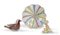 TRE SCULTURE IN VETRO, MURANO INIZI XX SECOLO a sagome di colomba in vetro sommerso con inclusioni di avventurina, tritone con inclusioni di avventurina e alzatina a fasce colorate con inclusioni in filigrana e avventurina. h. cm. 9, cm. 8 e cm. 7 x 17.