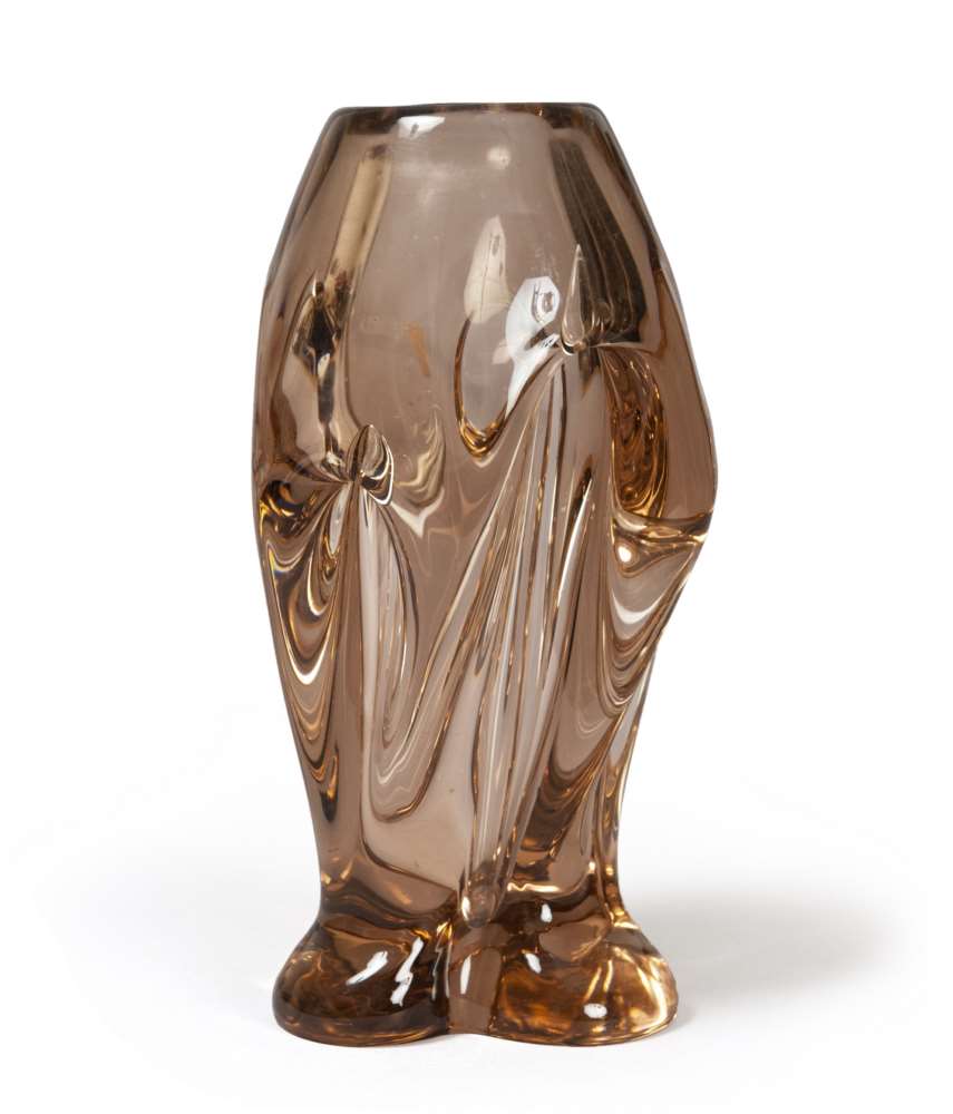 VASO IN VETRO, MURANO ANNI '40 a fondo rosa con sagoma di medusa. h. cm. 27.