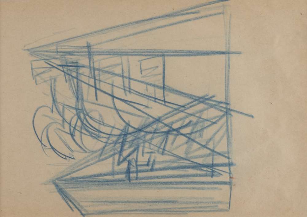 FORTUNATO DEPERO (Fondo 1882 - Rovereto 1960) Studio di cavallo per 'Solidità di cavalieri erranti', 1927 ca. Matita su carta, cm. 15,5 x 22 PROVENIENZA Collezione privata, Trento ESPOSIZIONI Depero, mostra del 50° anniversario dell'apertura del Museo