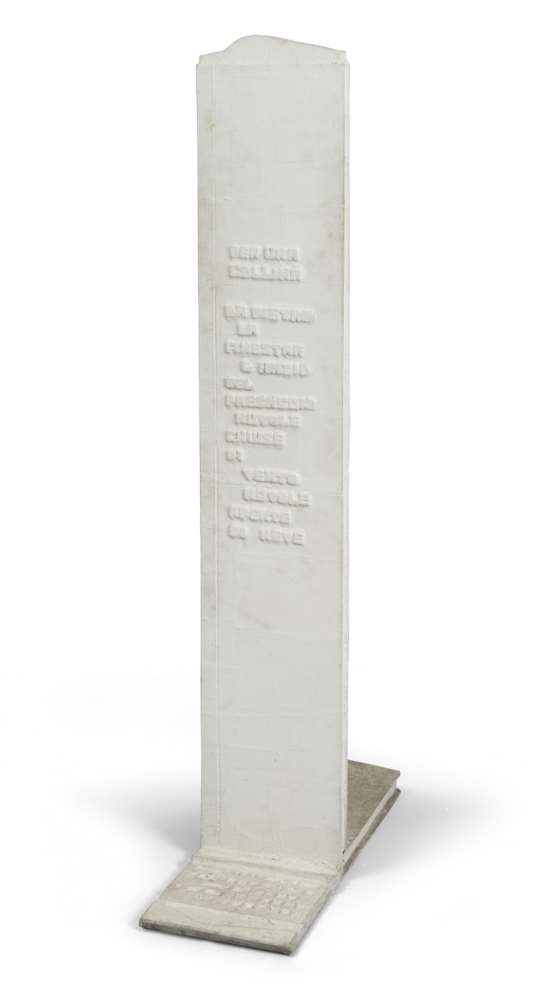 GIOVANNI MELONI (Montepulciano 1933) Stele, anni '70 Gesso, garze e acrilico, cm. 145 x 65 x 25 Firma sotto la base Tracce di umidità sulla base