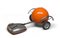GIOVANNI ALBANESE (Bari 1955) Aspirapolvere Olimpic, Modello Artemide, 2005 Metallo cromato e lacca arancio con corpo a sfera Misure, cm. 50 x 110 x 70 Firma al retro Autentica su foto dell'Artista, in data 2005