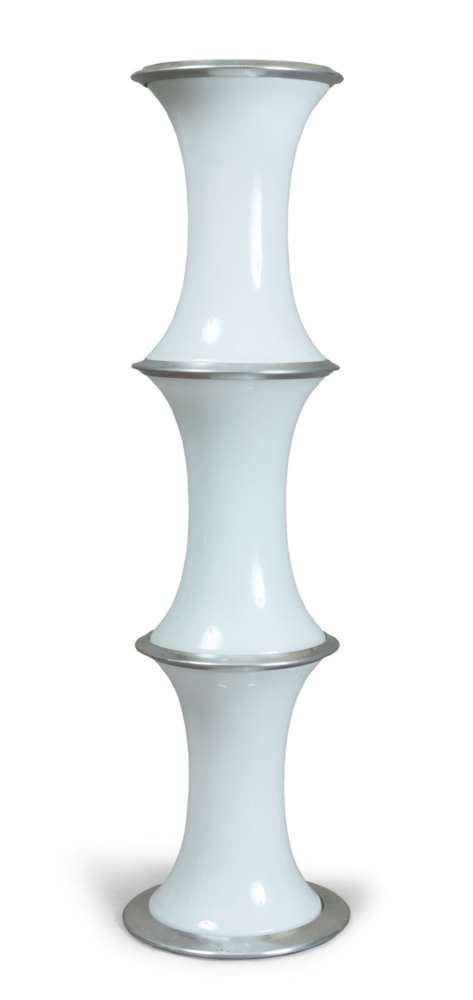 LAMPADA DA TERRA, ANNI '70 in metallo cromato e vetro. h. cm. 130.