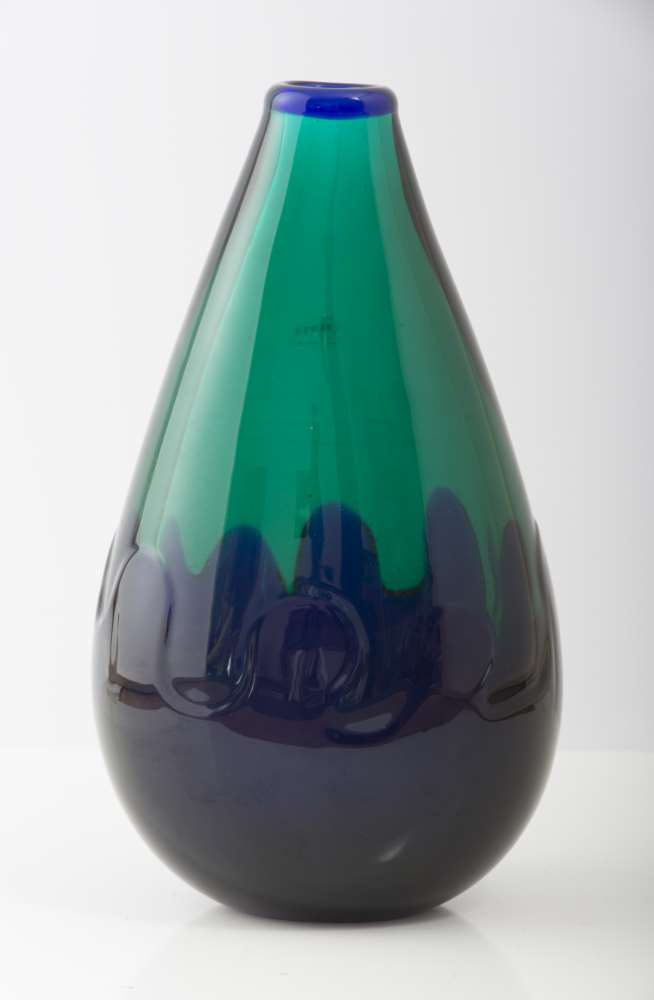 Lotto 369 | VASO IN VETRO SOFFIATO MURANO, ANNI '60 con doppia colorazione blu e verde....