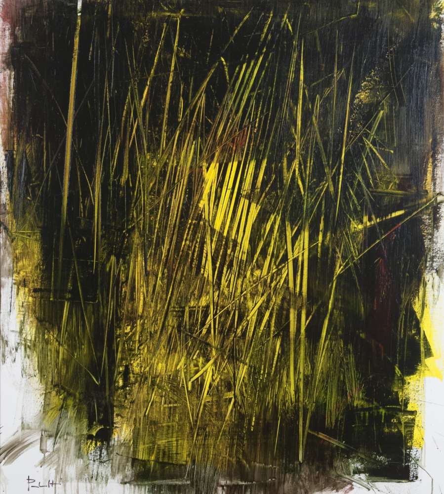 ANTONIO PEDRETTI (Varese 1950) Colpo di sole Smalti su tela, cm. 100 x 90 Firma in basso a sinistra Firma e titolo al retro