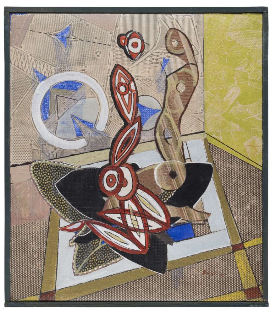 PAOLO BONI (Vicchio di Mugello 1926 - Padova 2008) Duo, 1985 Tecnica mista e collage su tela, cm. 74,5 x 65,5 Firma e data in basso a destra Firma, data, titolo e dedica al retro
