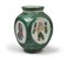 VASO, AVALLONE VIETRI XX SECOLO in ceramica maiolicata policroma con lati schiacciati e decorati a figurine. Firma sotto la base. Misure cm. 21 x 15 x 15.