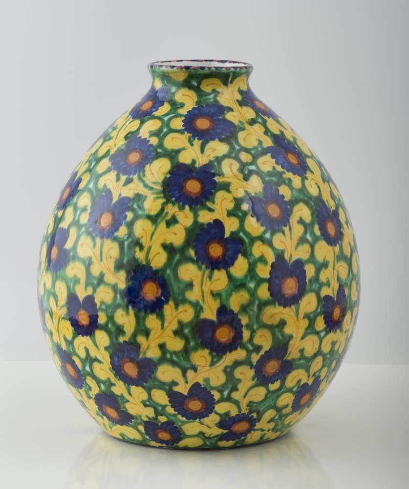 GIACOMO DOLCETTI (Venezia 1893 - 1957) Grande vaso a motivi floreali Ceramica policroma, cm. 35 x 25 Marchio 'G. Dolcetti, Venezia, 749-04, Made in Italy', sotto la base