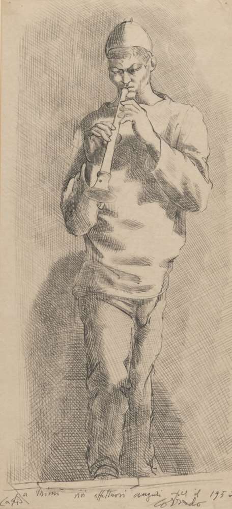 CORRADO CAGLI (Ancona 1910 - Roma 1976) Suonatore di flauto, 1952 Serigrafia,...