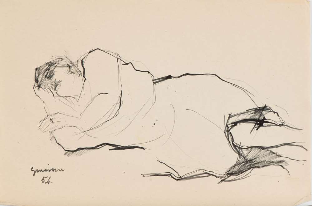 PIERO GUCCIONE (Scicli 1935) Studio per figura sdraiata, 1954 Penna e feltro...
