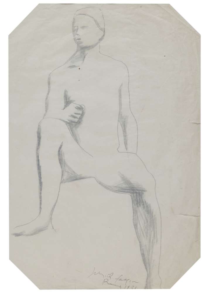 PERICLE FAZZINI (Grottamare 1913 - Roma 1987) Studio di cavaliere, 1931 Matita su carta, cm. 47,5 x 32 Firma e data in basso a destra Autentica su foto dell'artista in data Roma 14 aprile 1987