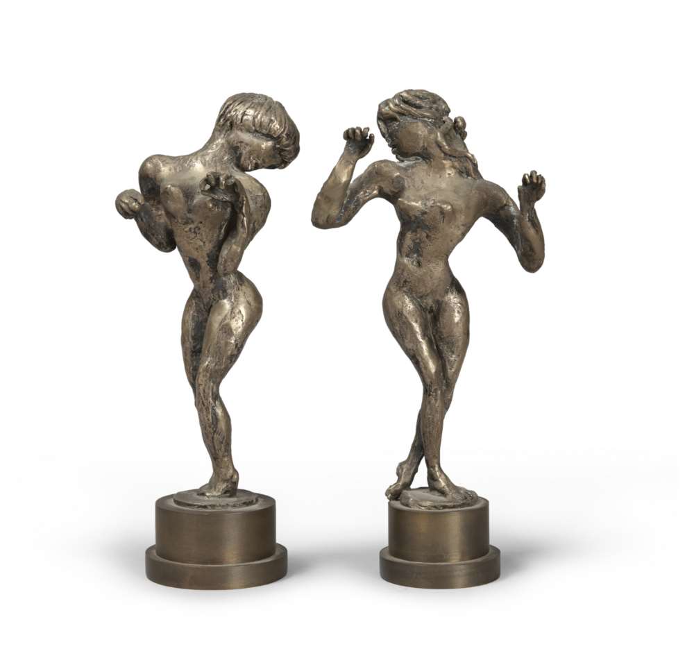 EDOLO MASCI (Castiglione a Casauria 1938 - Roma 2008) La vite Coppia di sculture in bronzo, ex. 2/150 e 3/150, h. cm. 24 Firma alla base