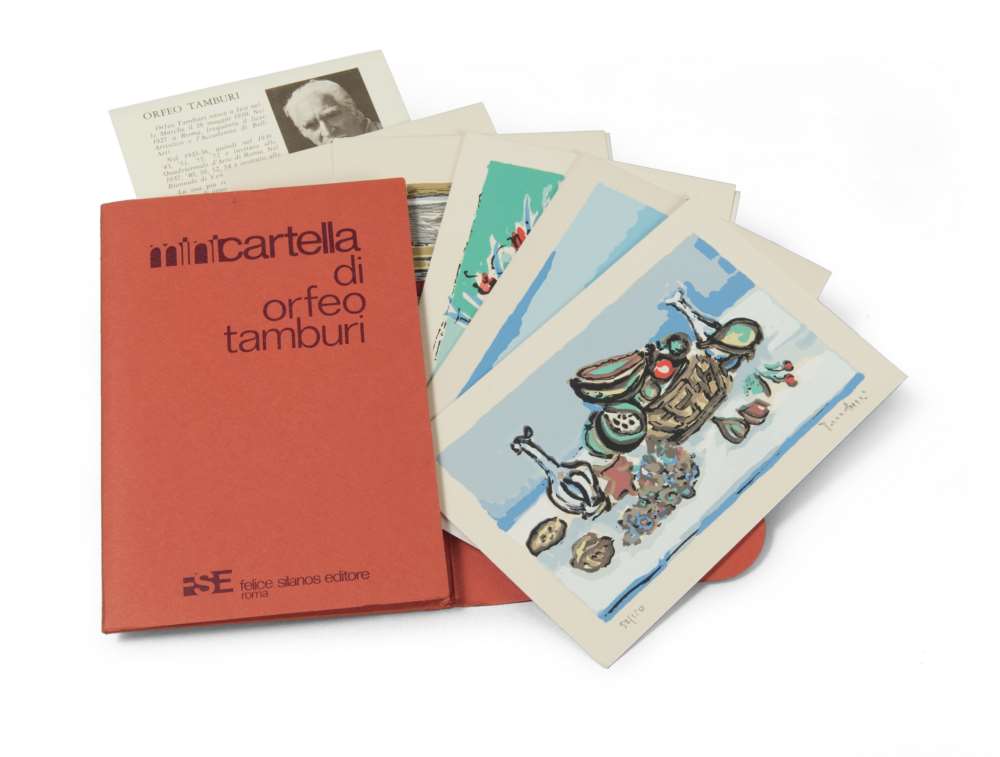 ORFEO TAMBURI (Jesi 1906 - Parigi 1994) Senza titolo, 1980 Sei serigrafie a colori, ex. 52/150 Misure del foglio, cm. 21 x 14 Firma in basso a destra In minicartella edita da Felice Silanos Editore