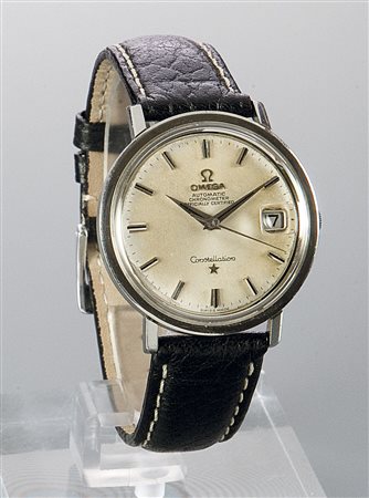OMEGA Constellation, solo tempo, anni '60 Diam 36 Cassa in acciaio in due corpi con fondo a vite; quadrante con indici geometrici applicati Movimento automatico