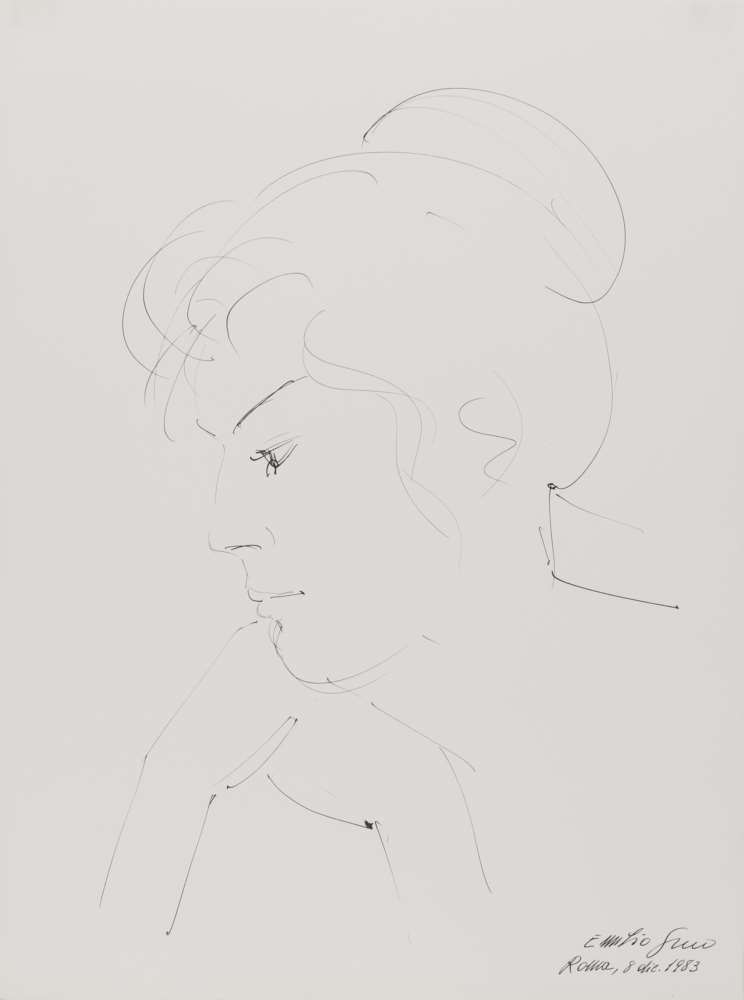 EMILIO GRECO (Catania 1913 - Roma 1995) Volto femminile, 1983 China su carta, cm. 71 x 52 Firma, data e luogo in basso a destra