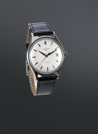 ULYSSE NARDIN Solo tempo, anni '60 Diam. 35 Cassa in due corpi con fondo a vite; quadrante argenté con indici applicati, secondi al centro Movimento automatico