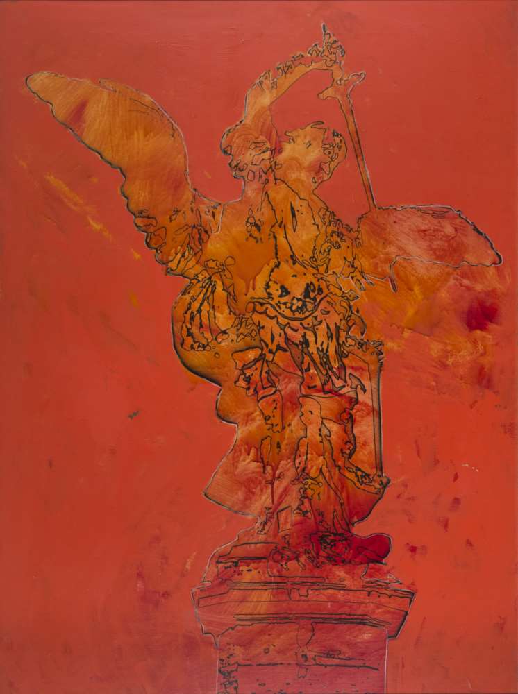 TANO FESTA (Roma 1938 - 1988) Angelo, 1979 Tecnica mista su tela emulsionata, cm. 120 x 90 Firma, data e dedica al retro Autentica su foto Archivio 'Tano Festa - Archivio delle Opere', Novembre 2016
