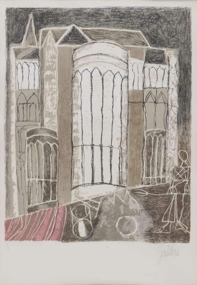 FRANCO GENTILINI (Faenza 1909 - Roma 1981) Cattedrale Litografia a colori, ex. 7/100 Misure della lastra, cm. 42 x 33 Firma in basso a destra
