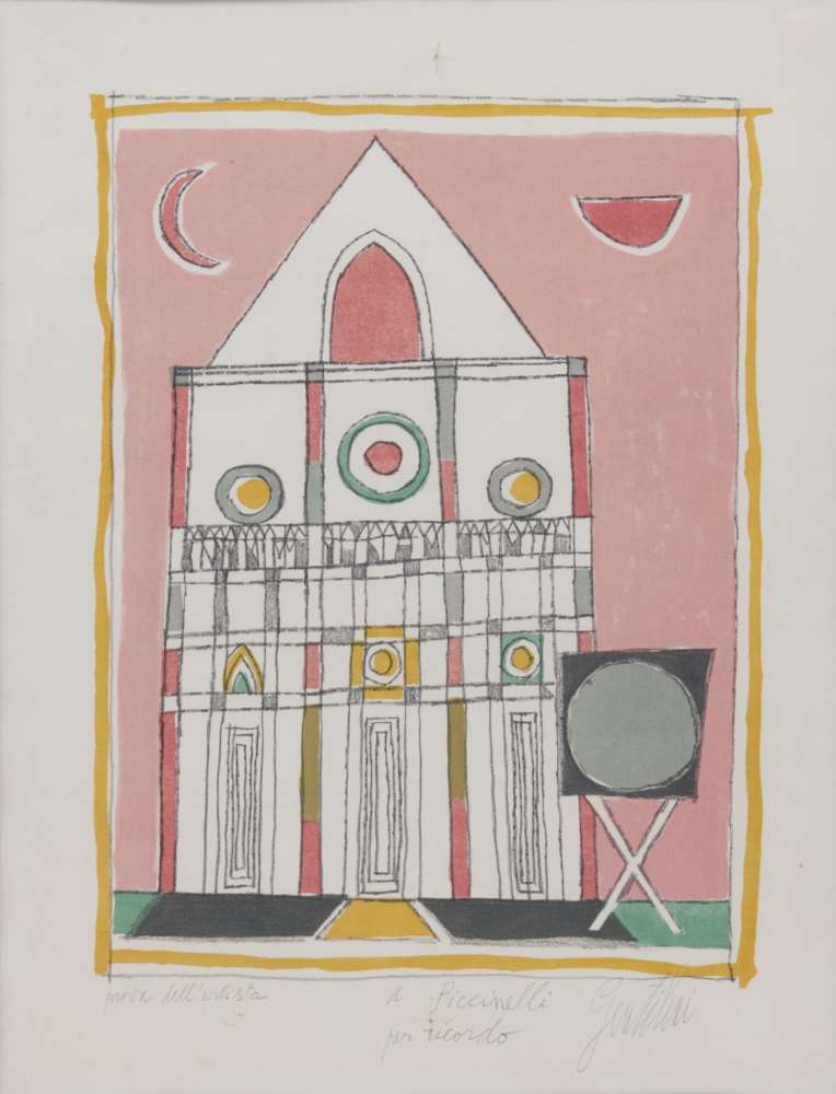 FRANCO GENTILINI (Faenza 1909 - Roma 1981) Cattedrale Litografia a colori,...