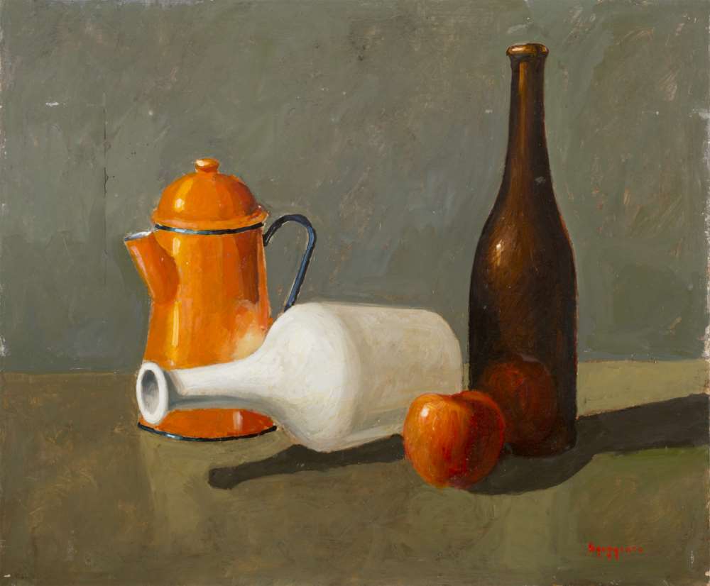 FRANCO AGUGGIARO (XX secolo) Natura morta Olio su tavola, cm. 50 x 60 Firma...