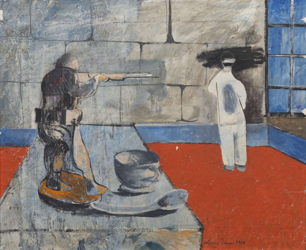 MARIO ZANINI (San Paolo 1907 - 1971) Esecuzione, 1969 Olio su tela, cm. 49 x 50 Firma e data in basso a destra