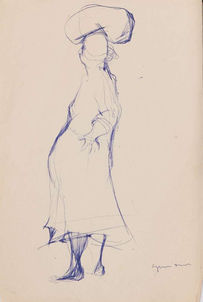 PIERO GUCCIONE (Scicli 1935) Portatrice, 1954 Penna su carta, cm. 30 x 20...