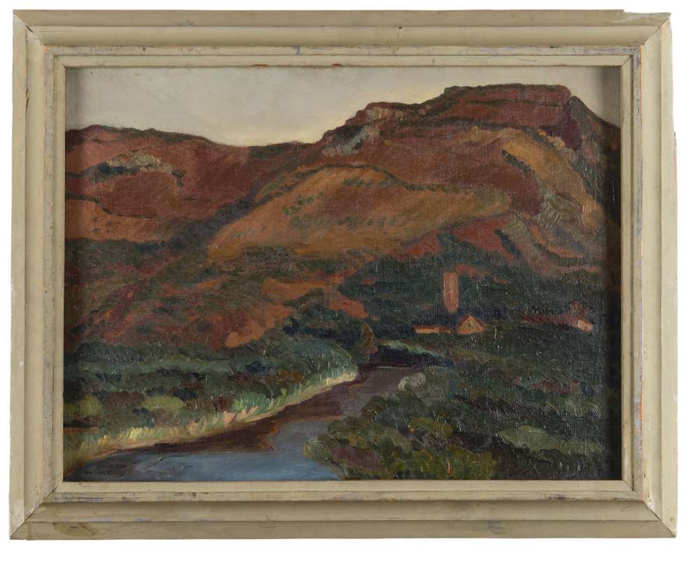 MELKIORRE MELIS (Bosa 1889 - Roma 1982) Vallata del Temo, 1925 Olio su tela, cm. 48 x 64 Firma in basso a sinistra ESPOSIZIONI III Biennale d'Arte, Roma 1925