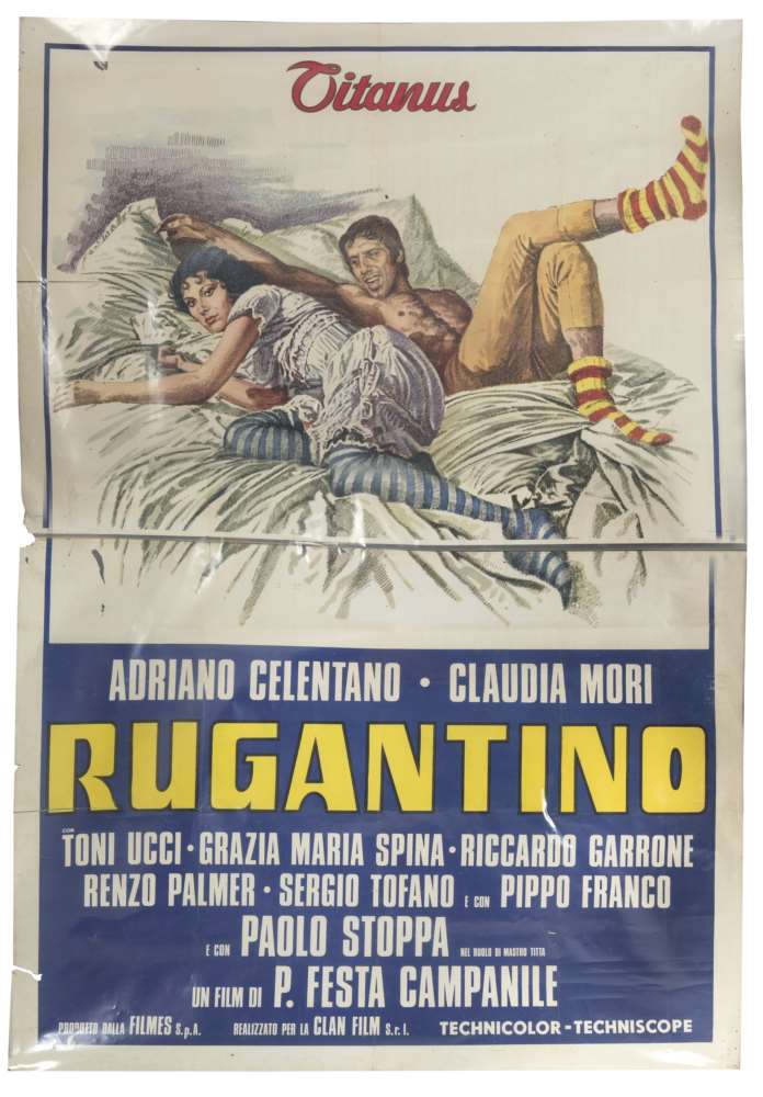 CINQUE MANIFESTI CINEMATOGRAFICI ORIGINALI, ANNI '60/'80 titolatii 'I dieci gladiatori', 'Due tipi incorregibili', 'Joan Lui', 'Rugantino' e 'Continuavano a chiamarlo Trinità'. Misura massima cm. 200 x 141. Difetti, pieghe ai fogli e alcuni strappi