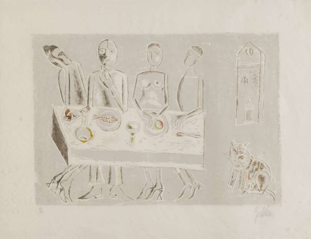 FRANCO GENTILINI (Faenza 1909 - Roma 1981) Famiglia Litografia a colori, ex....