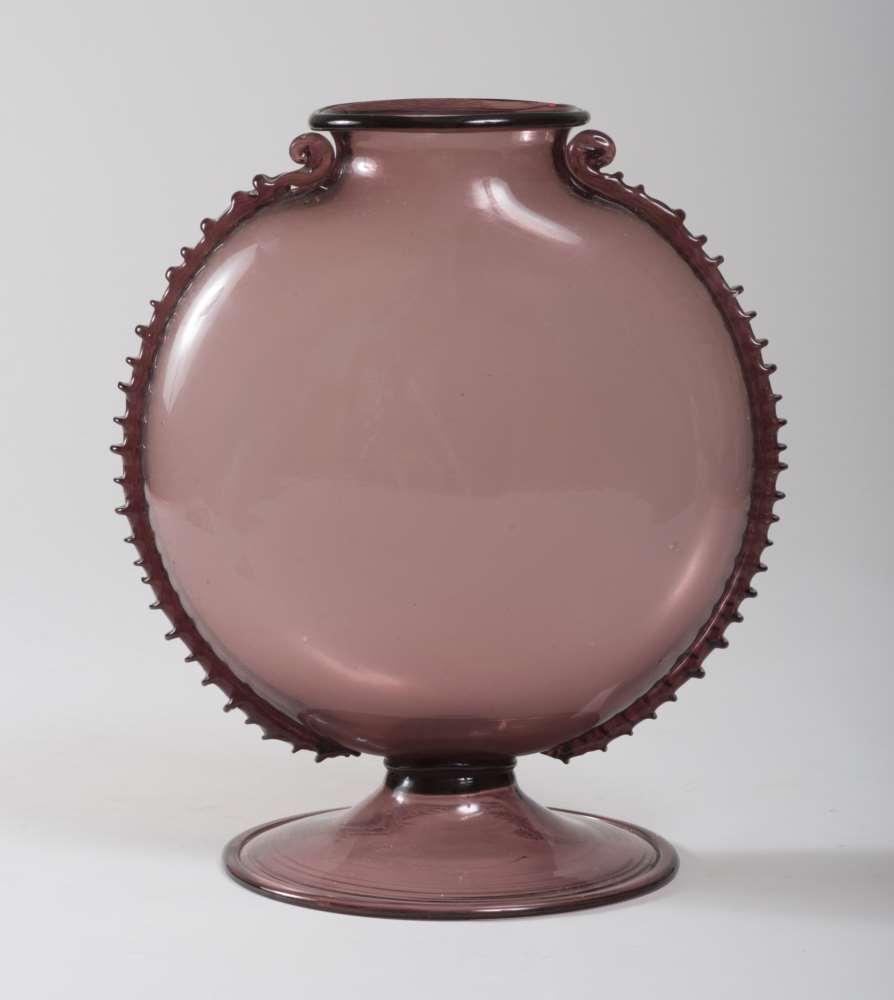 VASO IN VETRO SOFFIATO, MURANO ANNI '20 con corpo schiacciato a disco e bordo...