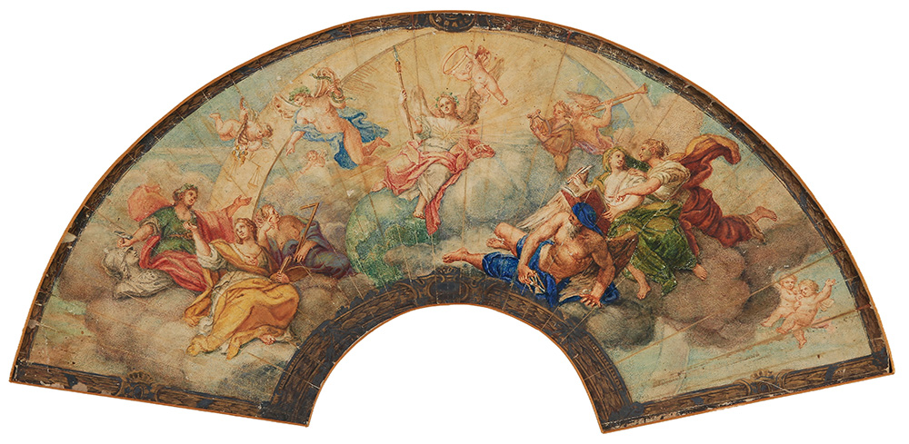 Scuola napoletana sec XVIII Studio per ventaglio Tempera su pergamena 18x45
